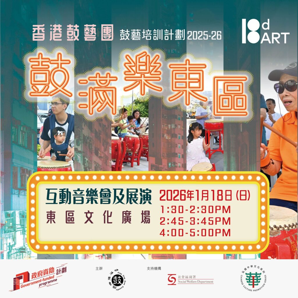 2025-26年度「十八有藝 — 東區社區演藝計劃」《鼓滿樂東區》鼓藝培訓計劃 — 互動音樂會/展演