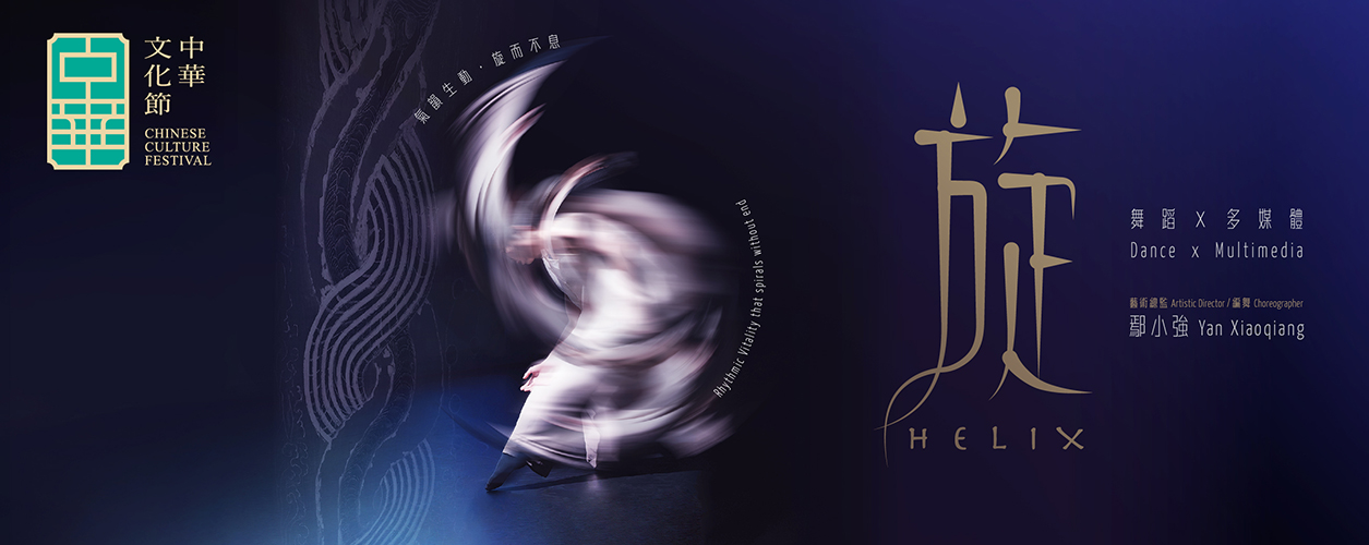 編舞家鄢小強結合多媒體設計及科技構思,經優秀舞者之靈動演繹,呈現傳統舞蹈與現代科技「陰陽交錯、虛實相生」的感性對話。編舞靈感來自DNA雙螺旋結構與唐墓《伏羲女媧圖》的意象,以中國舞「螺旋」動態為基調,捕捉「氣韻生動、旋而不息」的靈動精髓,探尋生命起源與延續,從而隱喻中華文化基因的傳承、演化與融合。在與時間競賽的數碼年代,來與中國傳統對宇宙、生命的永恆哲思打個照面,不啻是一場極富前瞻性的劇場體驗。